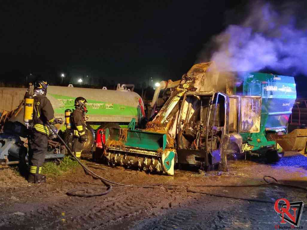 Ad incendiarsi un miscelatore per mangime situato in una cascina di via Casale ad Ivrea. Le fiamme si sono sviluppate dal vano motore e hanno avvolto il mezzo.