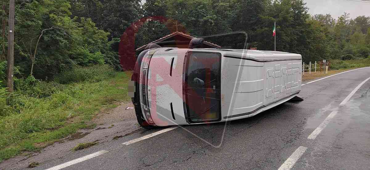 SAN MARTINO CANAVESE – Incidente oggi, lunedì 1 settembre 2025, sulla Sp56 a San Martino Canavese, di fronte alla Chiesa di San Bernardo. Un furgone Iveco Daily è finito con le ruote fuori carreggiata, sull’erba e fango, e si è ribaltato su un fianco, a bordo strada.